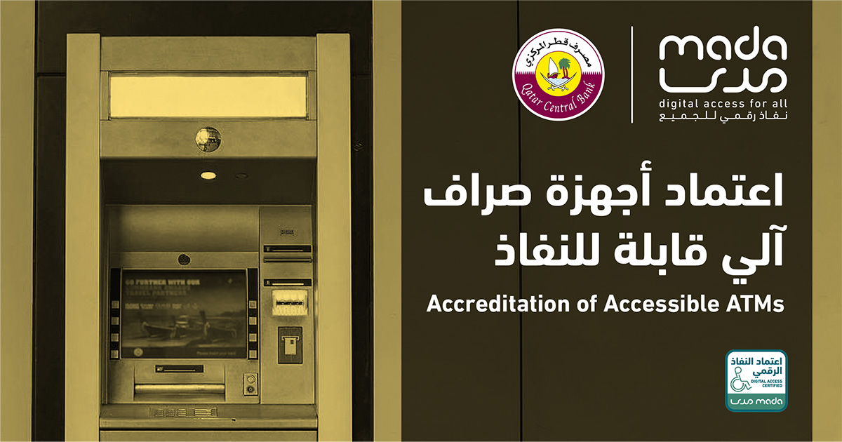 This accreditation comes as a result of the efforts made by Mada Center that held 6 training workshops for 9 employees of the Qatar Central Bank. The Center also organized a training workshop entitled “ATMs Accessibility” which was offered to 26 employees from various banks to raise their awareness about the concept of accessibility and the great difference that it makes in the lives of persons with disabilities and the elderly if accessibility standards were applied to digital platforms such as websites, banking applications, and ATMs. Consultation and audit sessions were also held with the participation of persons with disabilities to ensure the readiness of ATMs for accreditation.